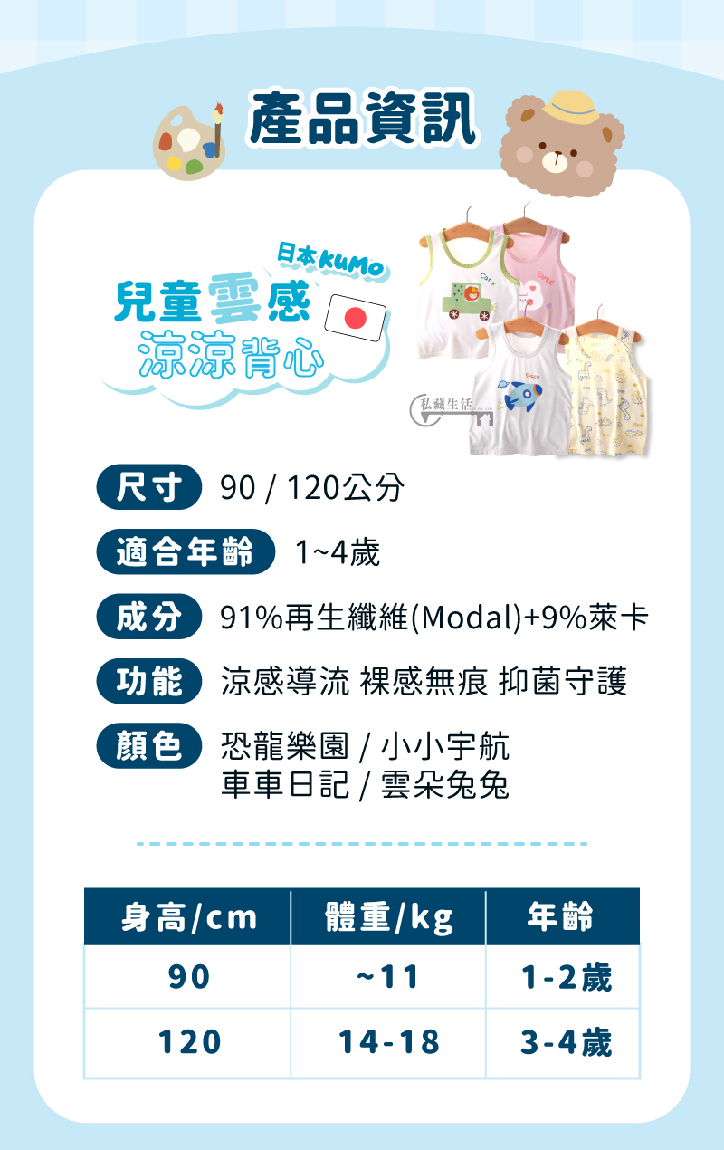 日本KUMO兒童雲感涼涼背心